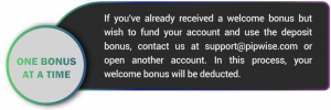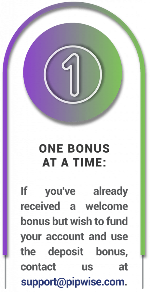 Unlock the Potential of Your Deposit with Our Remarkable 120% Deposit Bonus! At PIPWISE, we’re dedicated to enhancing your trading adventure. Introducing our extraordinary Deposit Bonus – elevate your initial deposit by an impressive 120%, establishing a robust capital foundation for exploring the diverse opportunities in the financial markets. The best part? Immediate access to trading without any waiting!