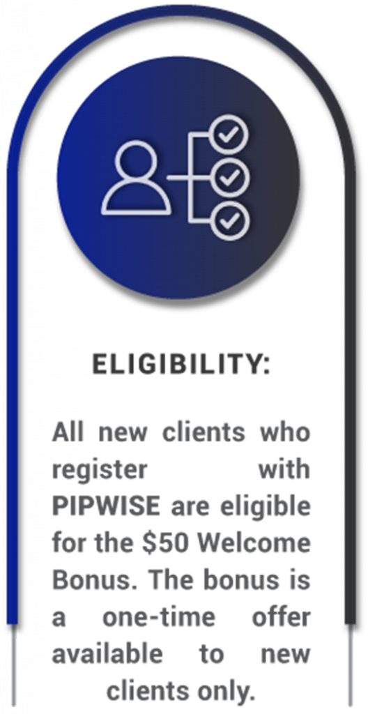 At PIPWISE, we value your partnership, and as a token of our appreciation, we’re thrilled to offer you a complimentary $50 Welcome Bonus upon your registration with us. The best part? No initial deposit is required!
